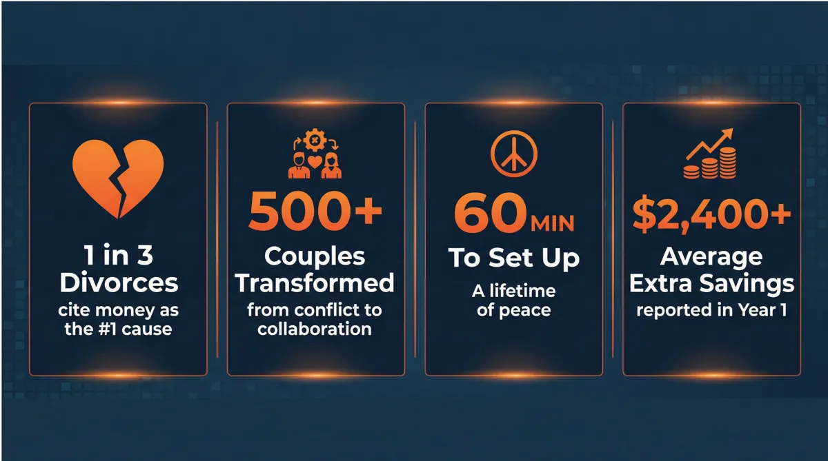 Most couples start seeing immediate clarity, a significant reduction in money-related stress, and a clear path forward within the first 60-90 minutes of setting up their system. Deeper alignment and habit formation typically occur within the first few weeks as you implement the automated processes.